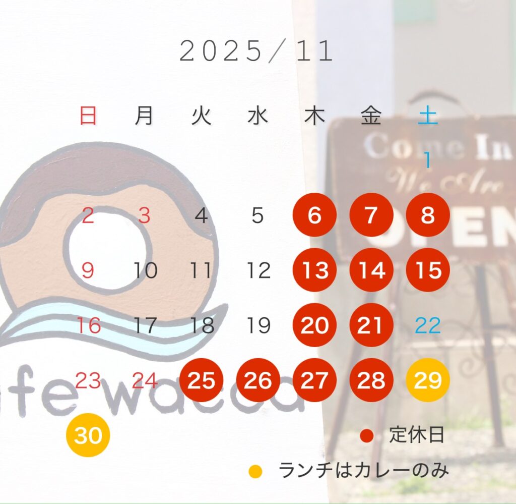 11月は休みが多くなっておりますが、当店へのご来店・ご予約を心よりお待ちしてます。